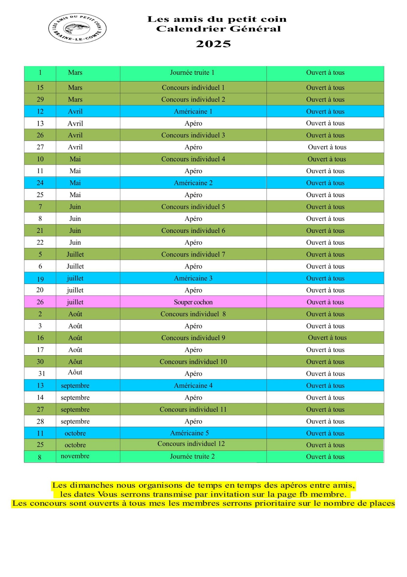 Les amis du petit coin Braine-le-Comte est un club de pêche passionné qui propose des activités et des événements pour les amateurs de pêche. Nous offrons des conseils, des sorties en groupe et des rencontres pour partager notre passion commune. Rejoignez-nous pour découvrir de nouveaux endroits et rencontrer d'autres passionnés de pêche !